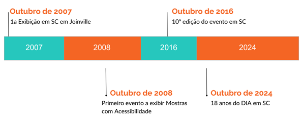 O Dia Internacional da Animação Santa Catarina tem uma trajetória marcante que abrange diversas edições, cada uma contribuindo para o fortalecimento e expansão desse importante evento cultural no Estado de Santa Catarina. O evento acontece desde 2007 e em 2024 chega à sua 18ª edição. A primeira edição do Dia Internacional da Animação em Santa Catarina foi realizada em Joinville. Hoje, cidades das mais diferentes regiões do Estado tem no Dia Internacional da Animação uma data comemorativa muito aguardada e celebrada.